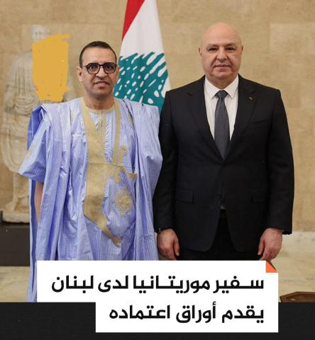 قدّم سعادة السفير المختار الشيخ محمد المجتبى، اليوم، أوراق اعتماده لفخامة رئيس الجمهورية اللبنانية العماد جوزيف عون، بصفته سفيرًا فوق العادة وكامل السلطة للجمهورية الإسلامية الموريتانية لدى الجمهورية اللبنانية، ومقيمًا بدمشق.